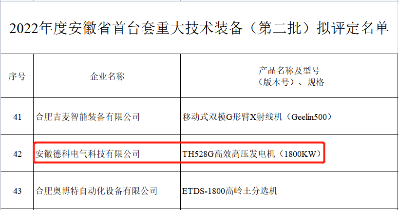 من أجل تشجيع ودعم تطوير وتطبيق المجموعة الأولى من المعدات التقنية الرئيسية ، وتسريع التحول والارتقاء بصناعة تصنيع المعدات في مقاطعتنا ، وتعزيز بناء مقاطعة تصنيع قوية ، وفقا ل "إدارة الاقتصاد وتكنولوجيا المعلومات بمقاطعة آنهوي الصادرة عن المجموعة الأولى من المعدات التقنية الرئيسية في مقاطعة آنهوي.الدفعة الأولى من المواد الجديدة والإصدار الأول من التدابير المؤقتة لإدارة تقييم البرمجيات > إشعار" ، بعد إعلان الشركة ، مراجعة قسم إدارة الاقتصاد والمعلومات في المدينة والتوصية ، تنظم منظمة تقييم الطرف الثالث تقييم الخبراء والدعاية وغيرها من الإجراءات ، EvoTec يتم تقييم توليد الطاقة عالية الكفاءة عالية الجهد TH528G. ستكون مجموعات المعدات ال 116 مثل الآلات هي المجموعة الأولى من المعدات التقنية الرئيسية في الدفعة الثانية من مقاطعة آنهوي في عام 2022.